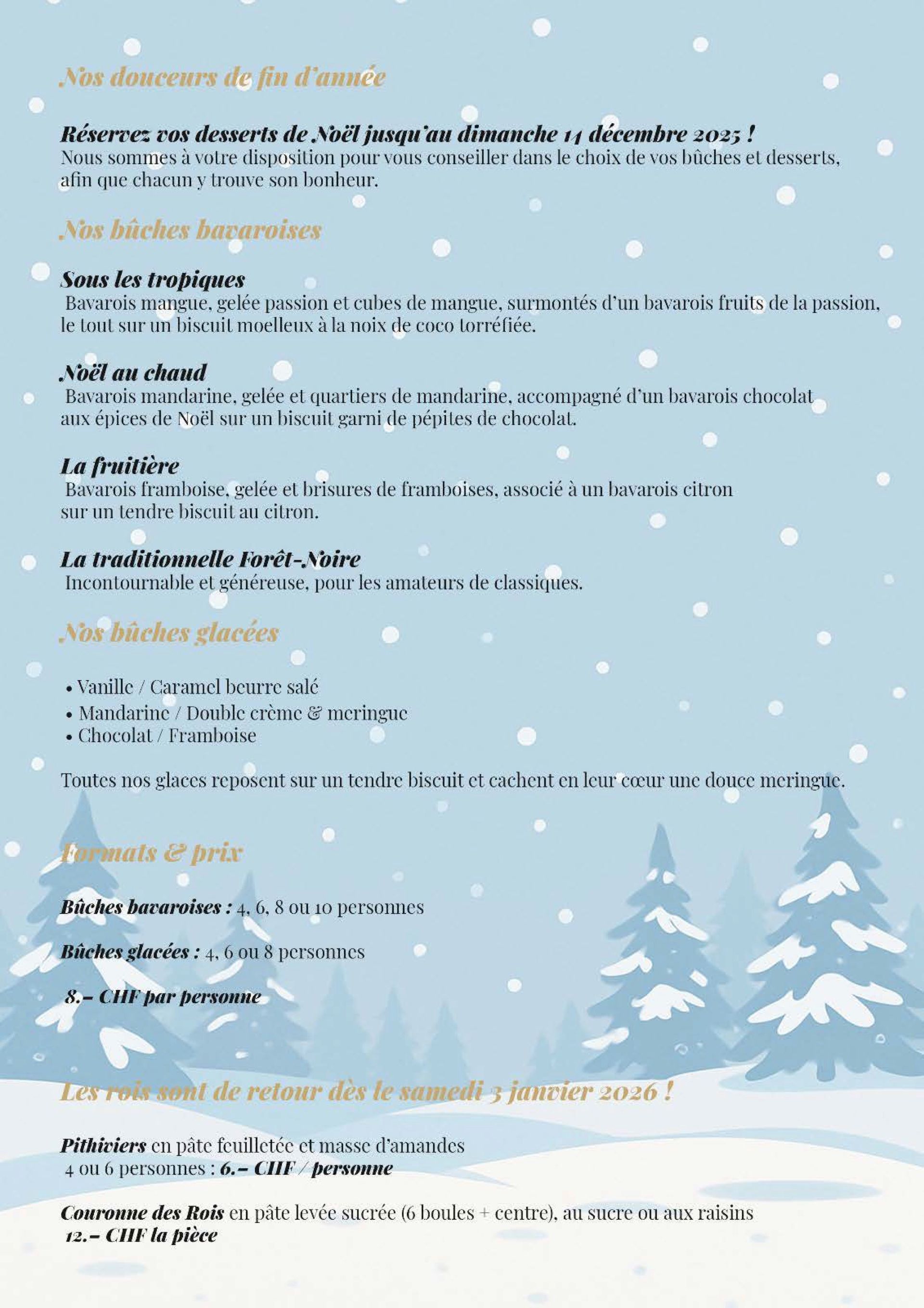 Merci de réserver vos desserts de Noël jusqu'au dimanche 14 décembre